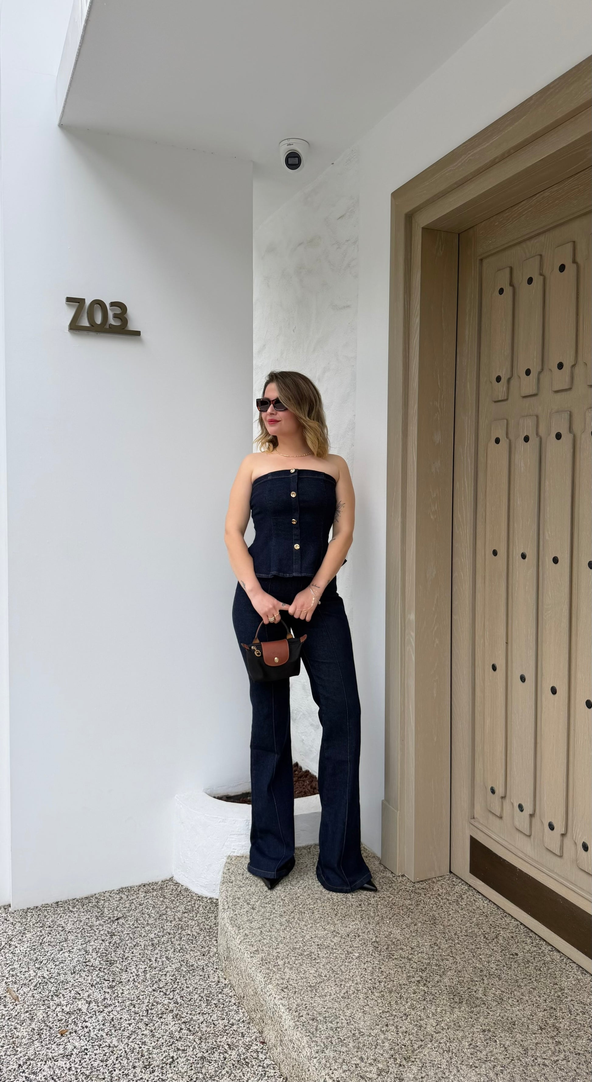 Gold düğme detaylı kot ikili takım
