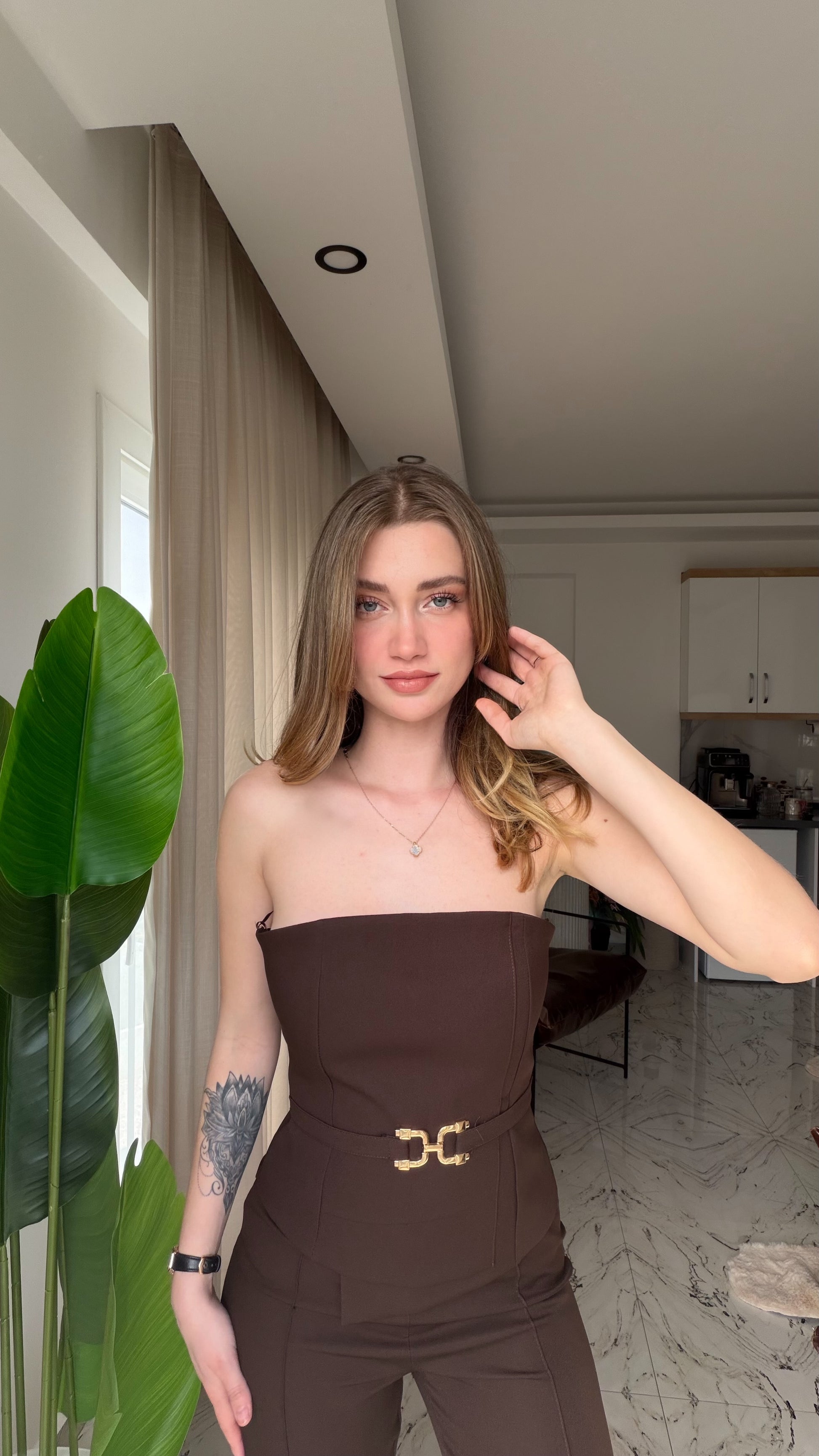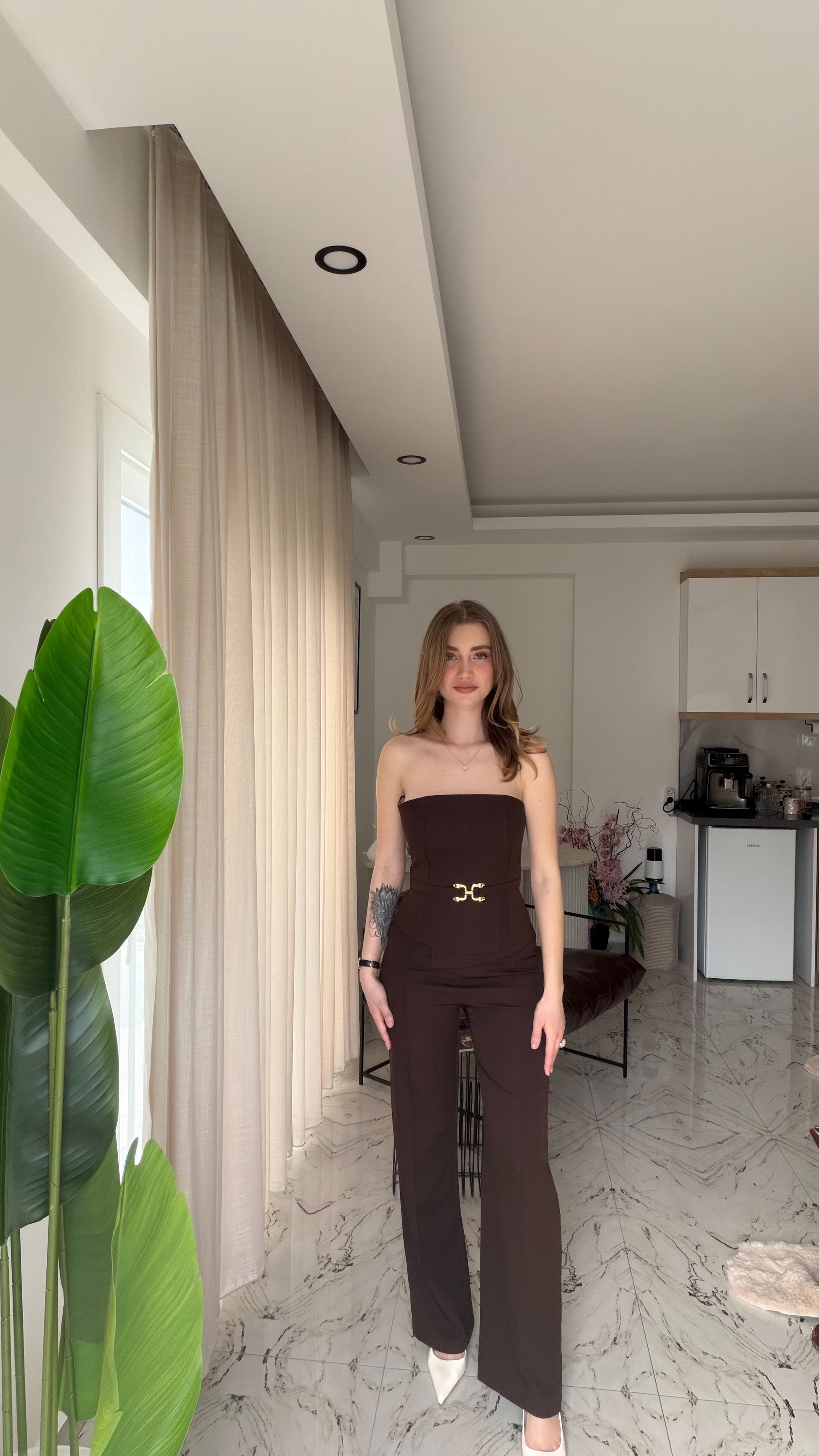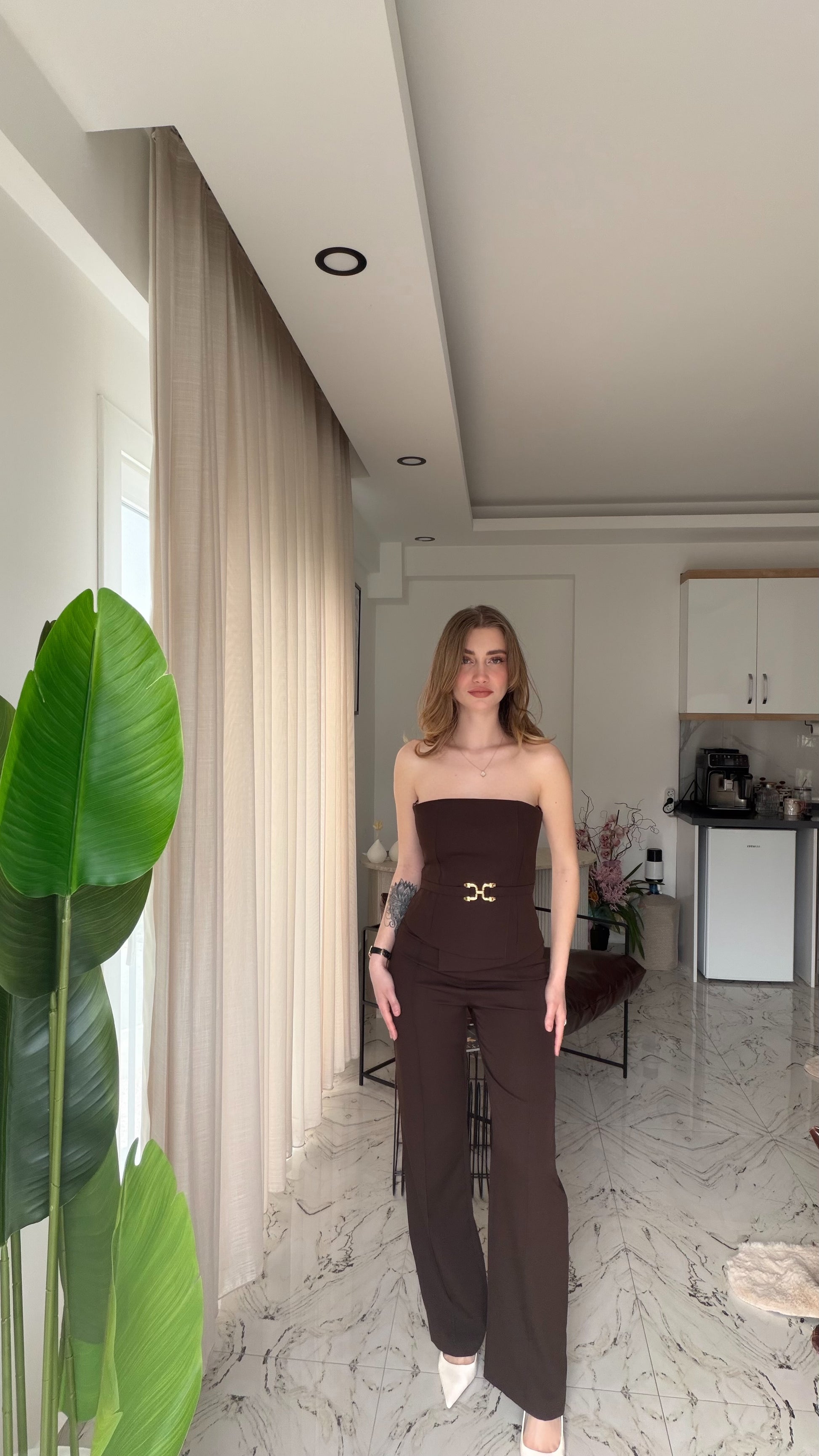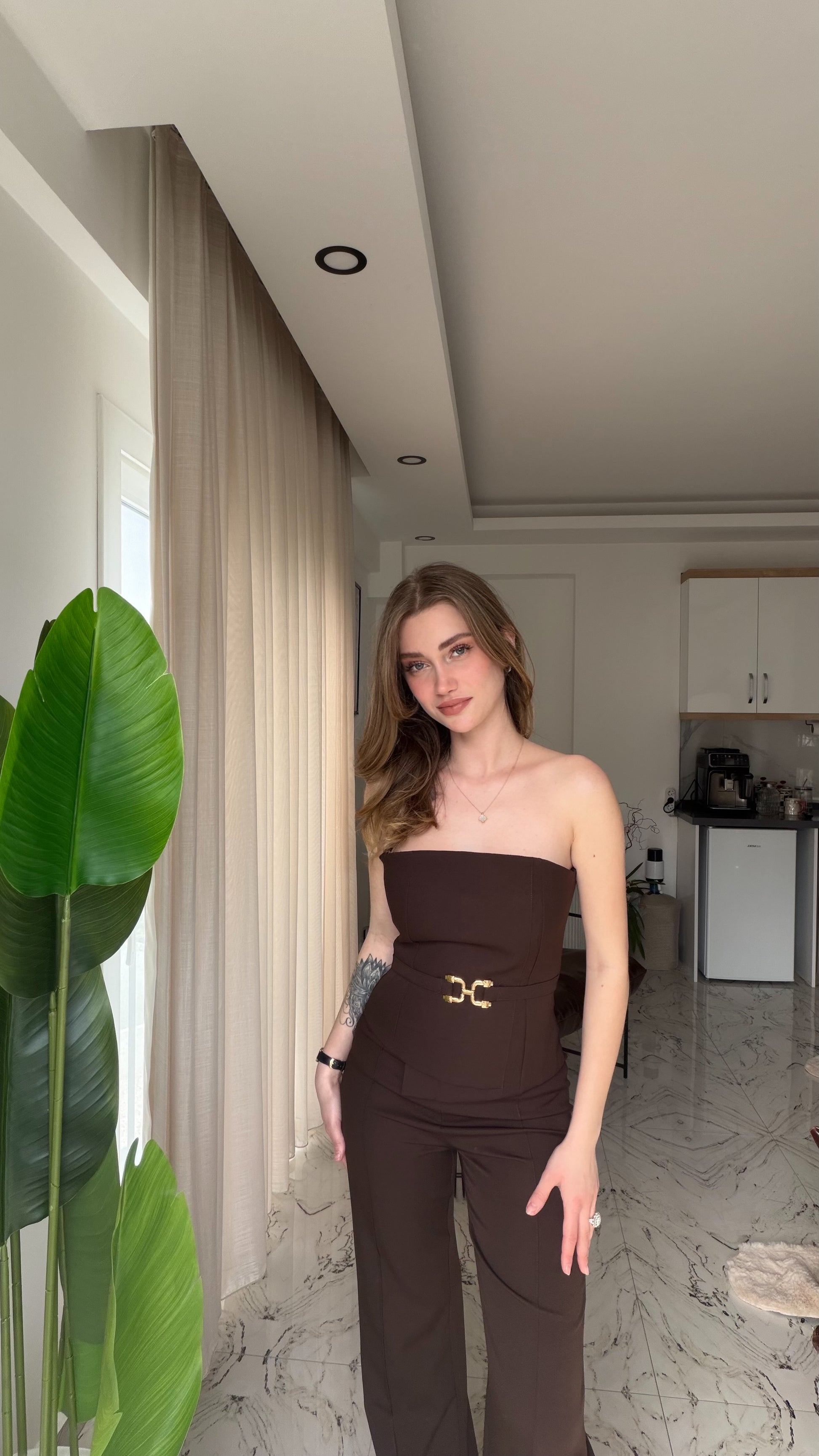 Gold Kemer detaylı tulum rahat kesim